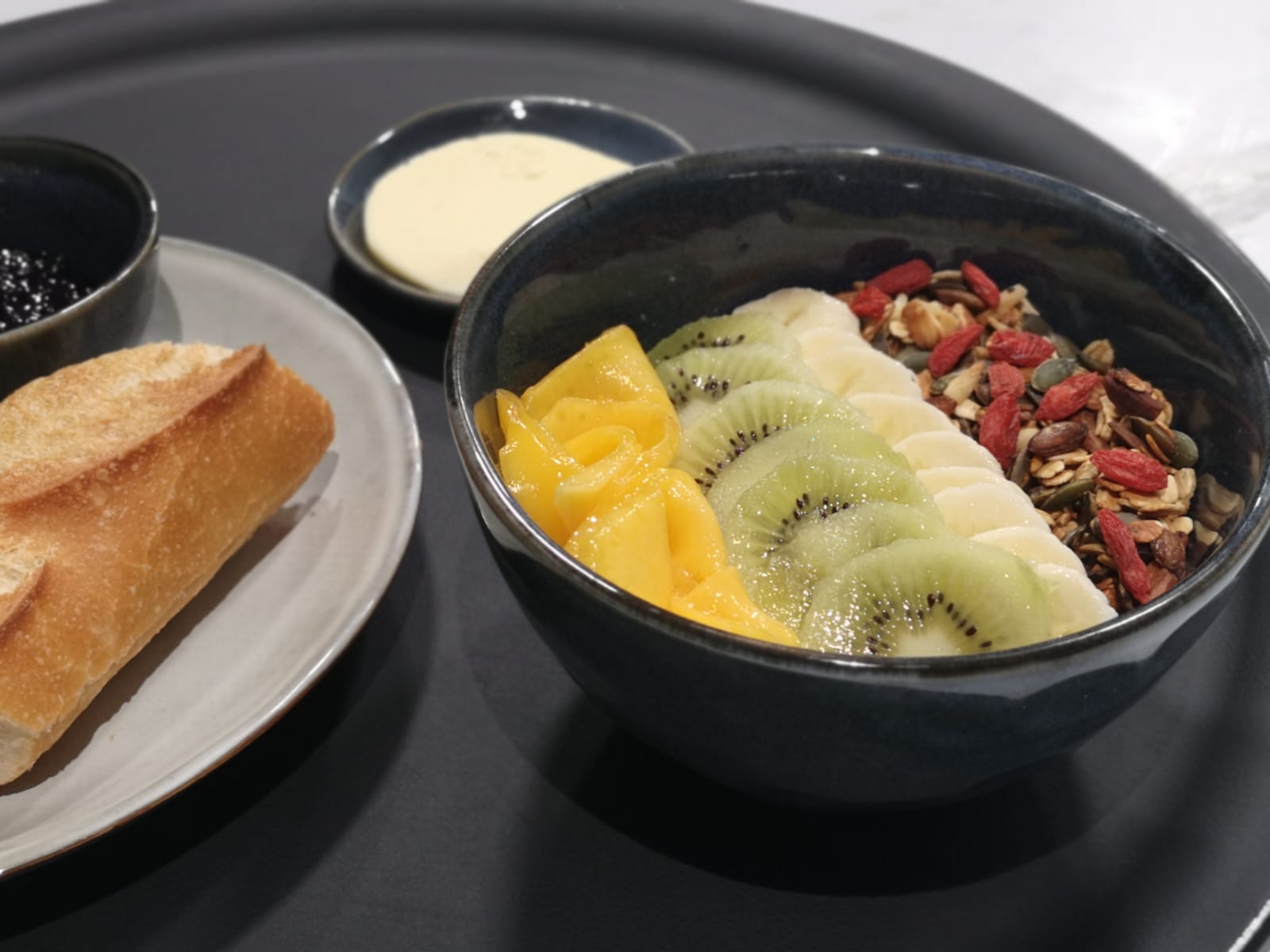 Fidèles à l'esprit de nos pâtisseries, nous proposons pour votre pause déjeuner en semaine des encas frais, élégants et de saison.